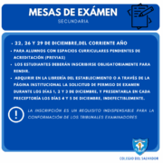 SECUNDARIO: IMPORTANTE, MESAS DE EXÁMEN, ESTUDIANTES CON MATERIAS PENDIENTE 22,26 Y 29 DIC.