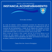 - COMUNICADO IMPORTANTE: INSTANCIA ACOMPAÑAMIENTO – DE 18 A 24 DE FEB. NIVEL SECUNDARIO febrero 11, 2026