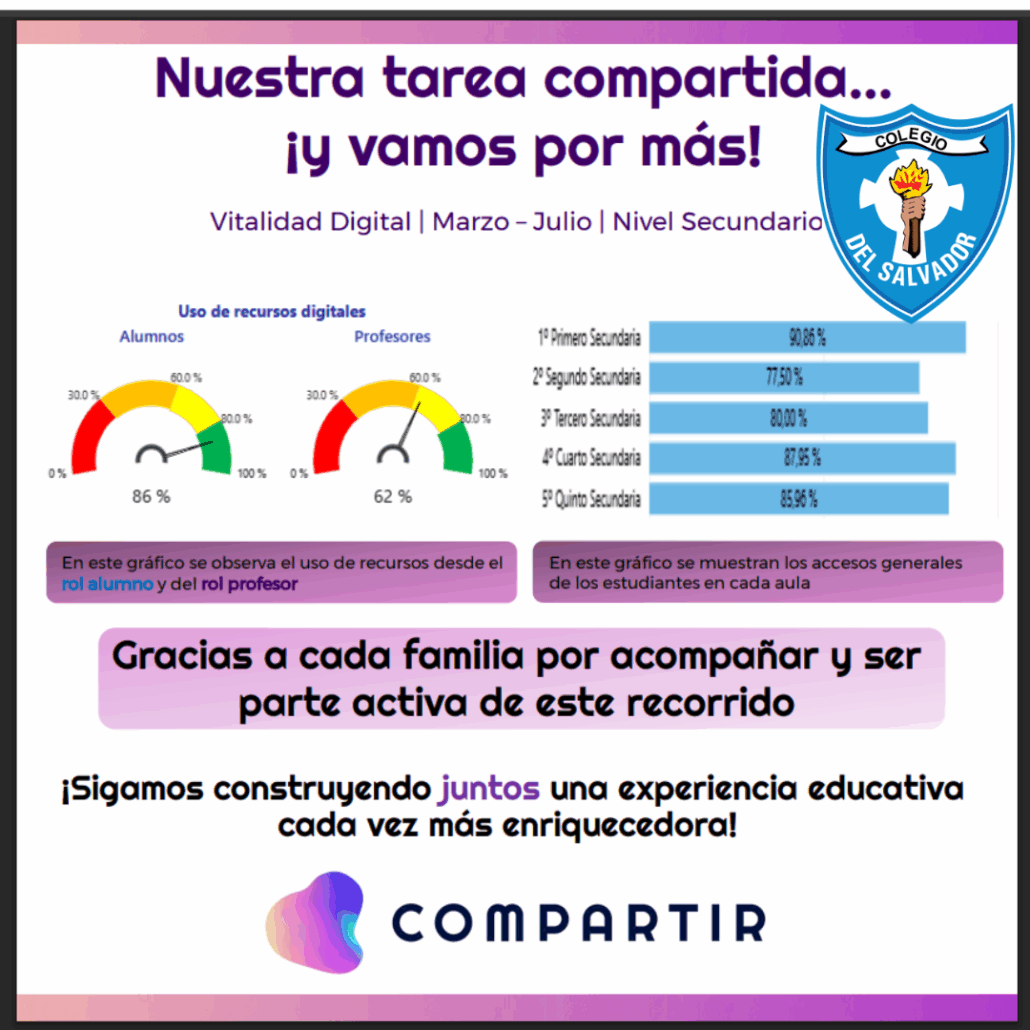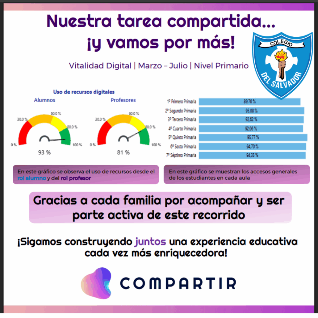 Feliz Receso les desea Santillana Compartir y nos da estos informes de evolución de uso de recursos
