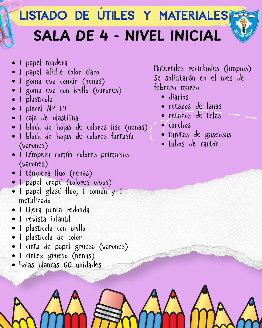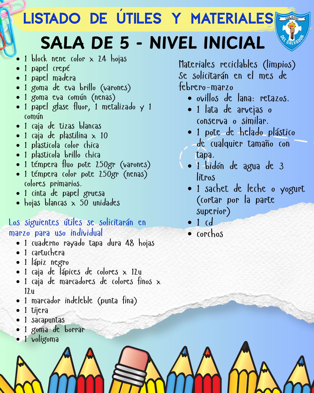 - LISTADO DE MATERIALES Y ÚTILES 2026 NIVEL INICIAL SALAS DE 3,4,5 enero 2, 2026